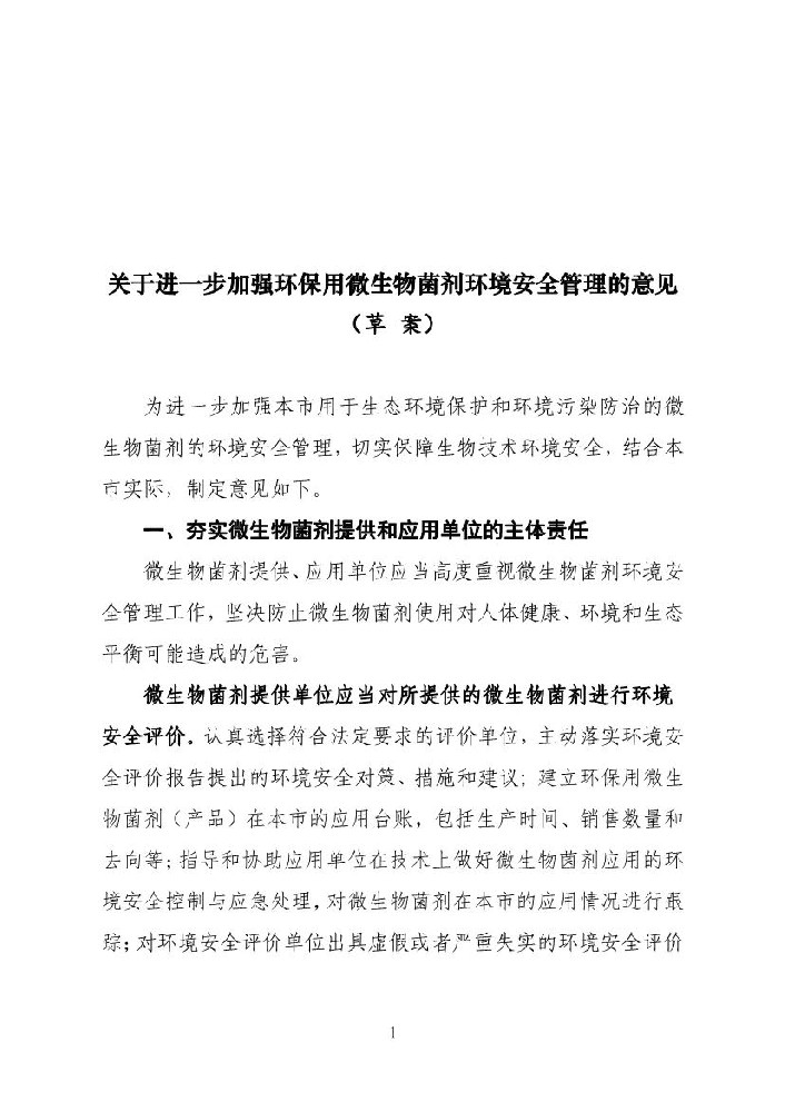 1、關(guān)于進(jìn)一步加強環(huán)保用微生物菌劑環(huán)境安全管理的意見(草案)